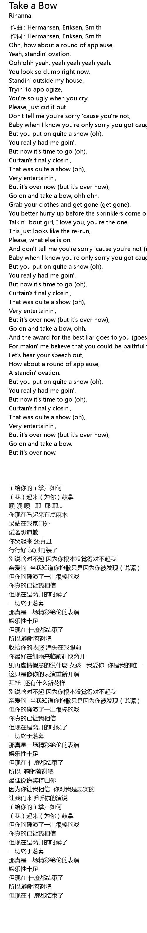 | [02:26.659] | Go on and take a bow, ohh. |