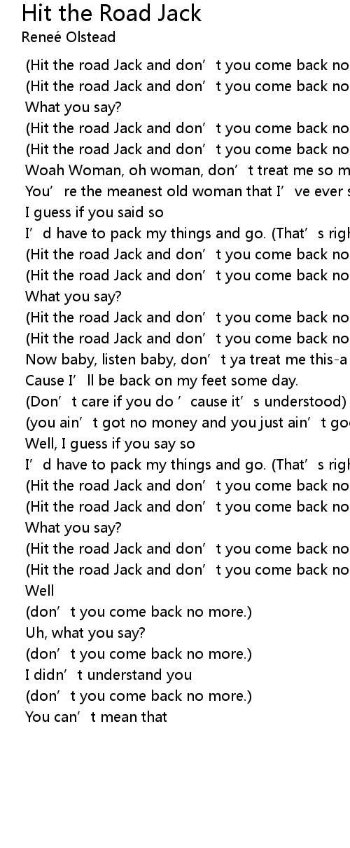 | Hit the road Jack and don' t you come back no more. | |