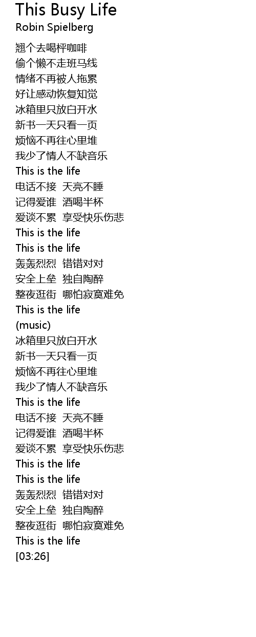 | Song | This Busy Life |