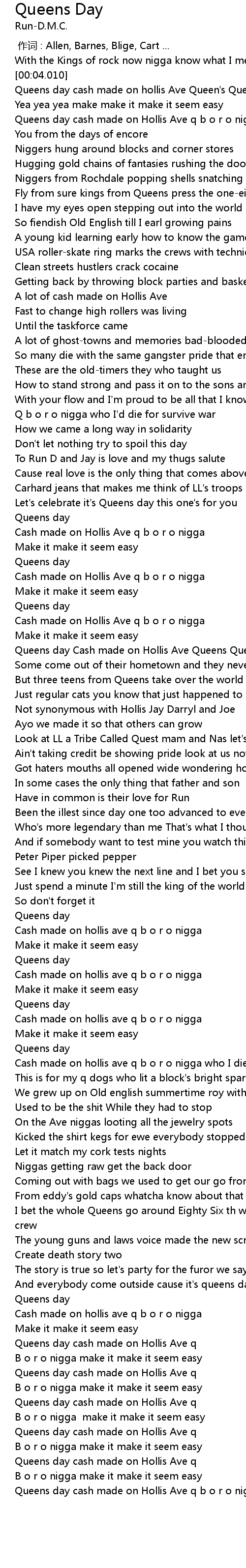 | [03:34.320] | Cash made on hollis ave q b o r o nigga |