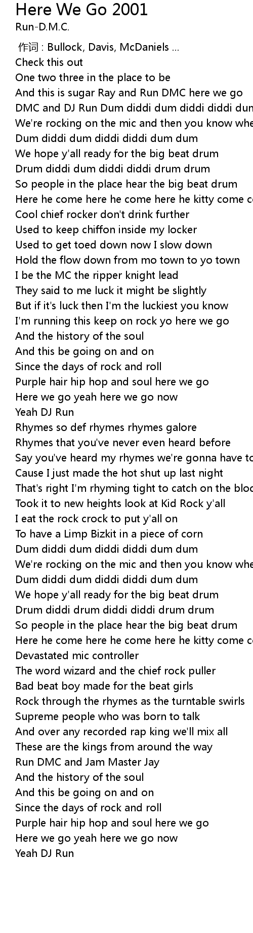 | [00:13.27] | DMC and DJ Run Dum diddi dum diddi diddi dum dum |