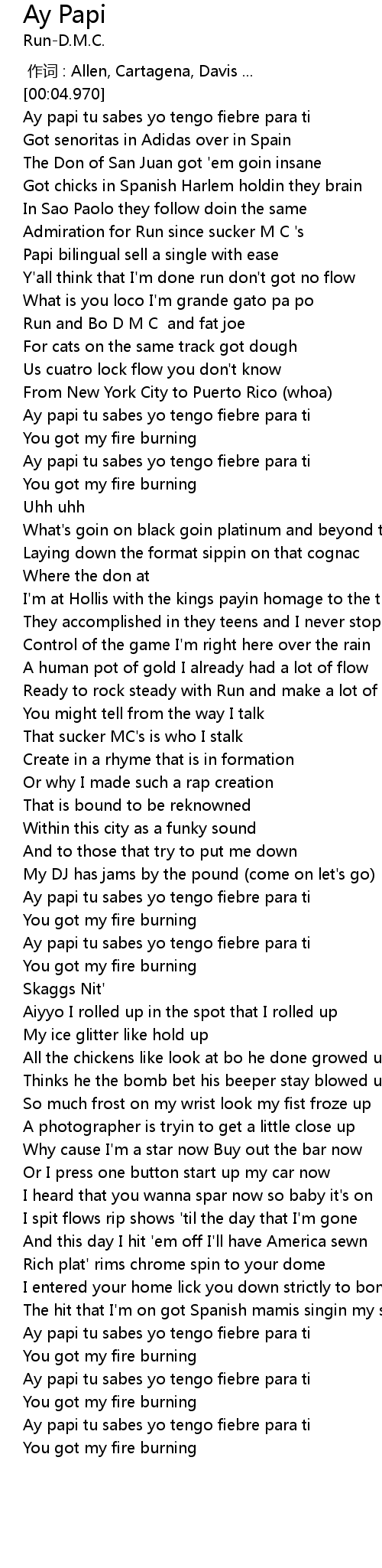 | [00:55.390] | Ay papi tu sabes yo tengo fiebre para ti |