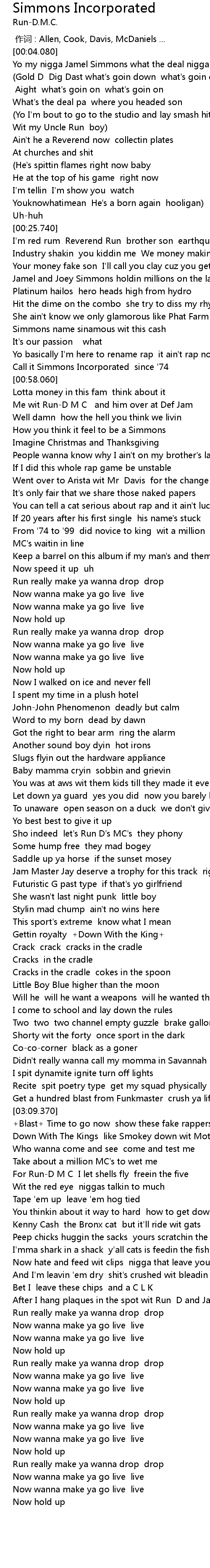 | [02:12.670] | Sho indeed let's Run D's MC's they phony |