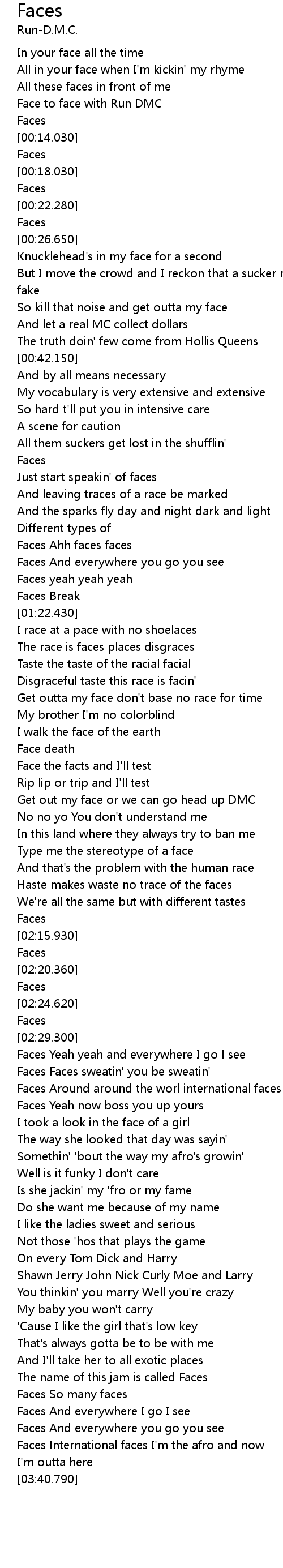 Faces yeah yeah yeah |