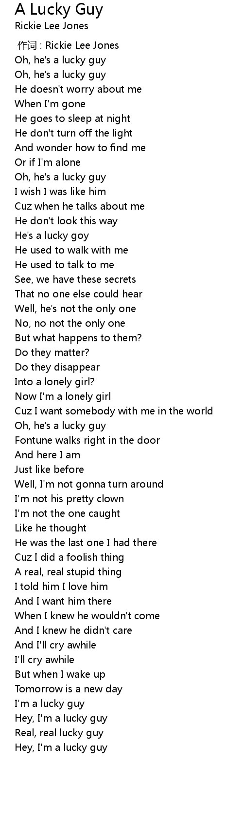| [00:38.50] | Oh, he's a lucky guy |