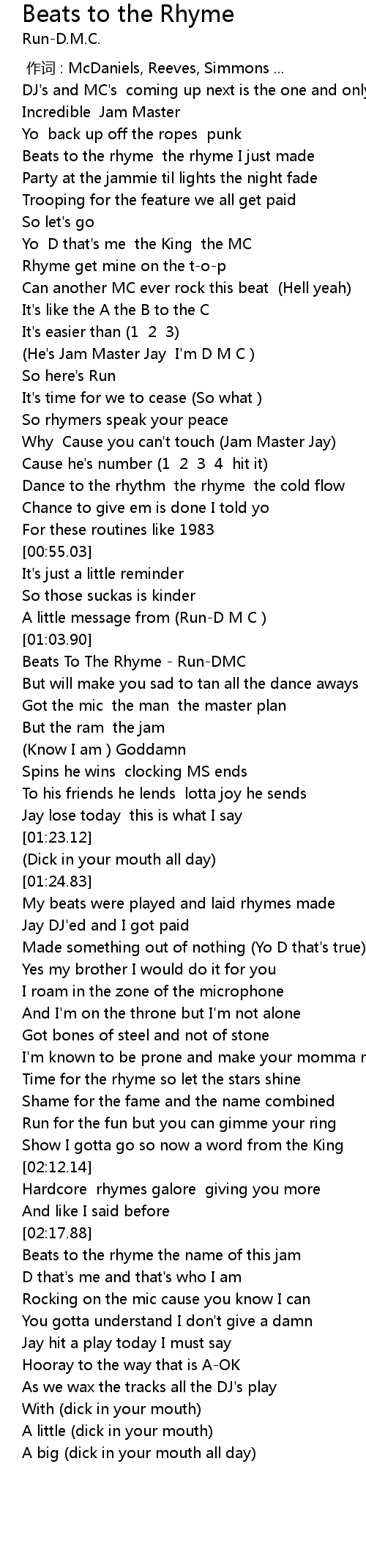 | [01:06.59] | Beats To The Rhyme - Run-DMC |