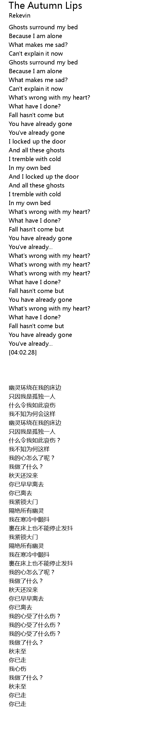 | [02:04.02] | Fall hasn't come but |