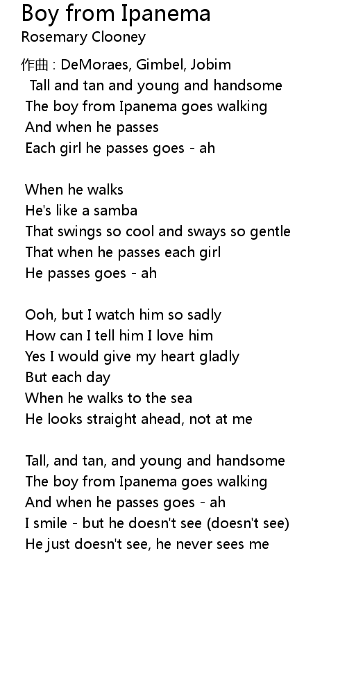 | 作曲 : DeMoraes, Gimbel, Jobim | |