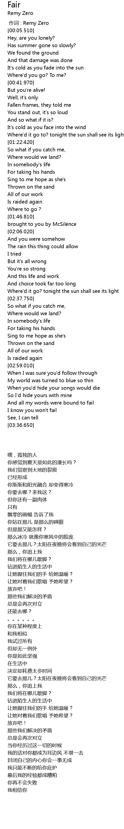 | [00:00.00] | zuò cí : Remy Zero |