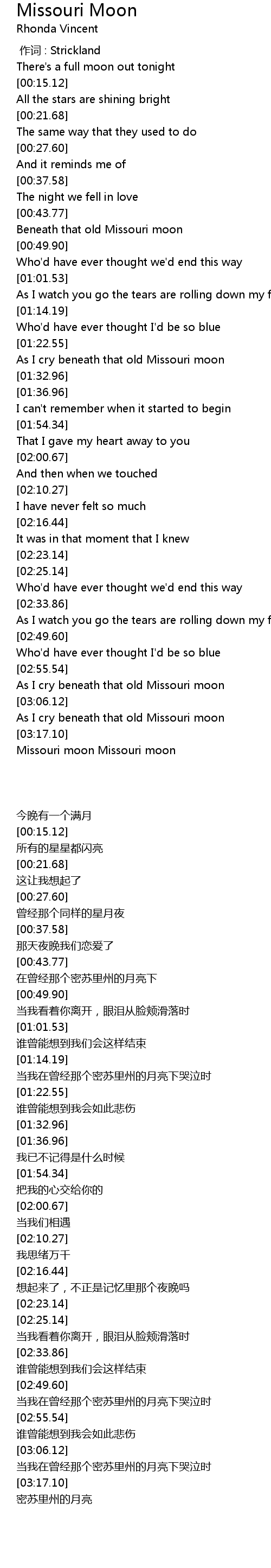 | [03:00.12] | As I cry beneath that old Missouri moon |