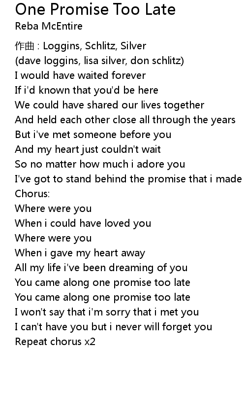 | Song | One Promise Too Late |