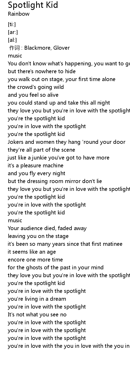 | [02:38.64] | they love you but you' re in love with the spotlight |