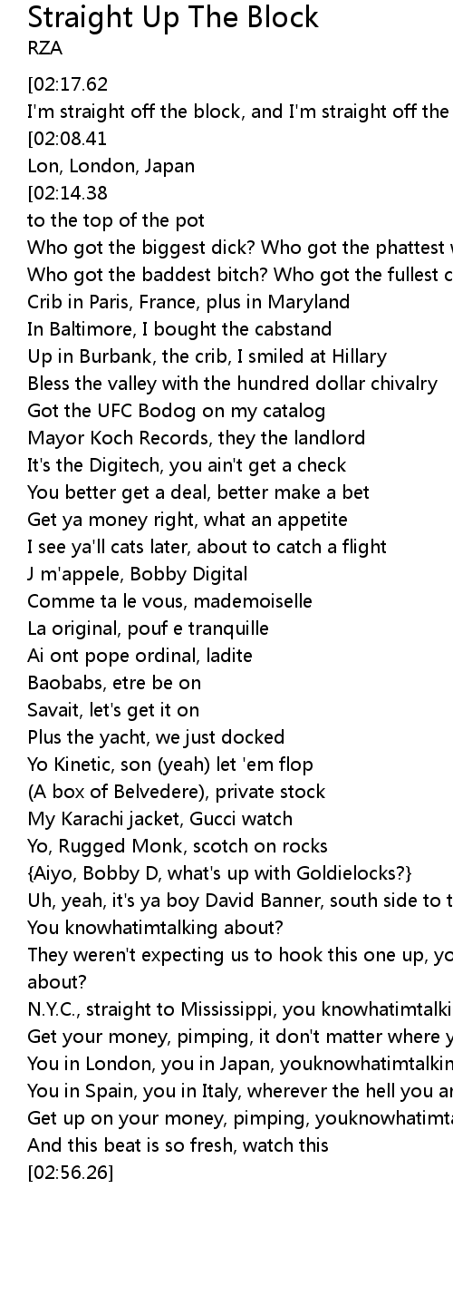 And I'm straight off the block, and I'm straight off the block |
