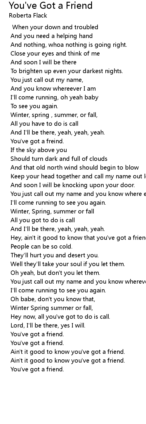Ain't it good to know you've got a friend. |