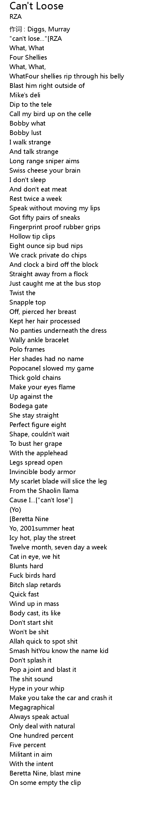 | [man singing continuously]"can't lose..."[RZA] | |