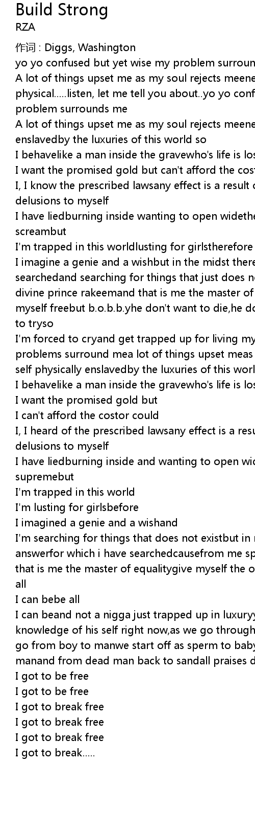 | I imagine a genie and a wishbut in the midst there' s the answer for which i have searchedand searching for things that just does not existcause from me springs divine prince rakeemand that is me the master of equalitywith the abilityto set myself freebut b. o. b. b. yhe don' t want to die, he don' t want to die he don' t want to tryso | |