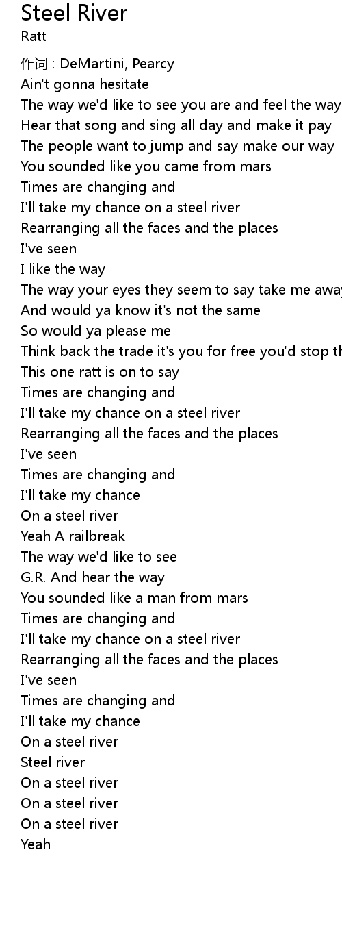 | I'll take my chance on a steel river | |
