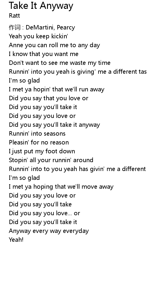 | Did you say you' ll take it anyway | |