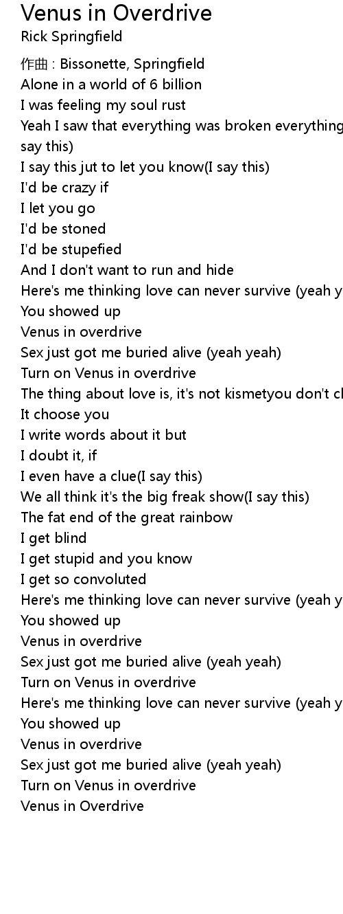 | Song | Venus in Overdrive |