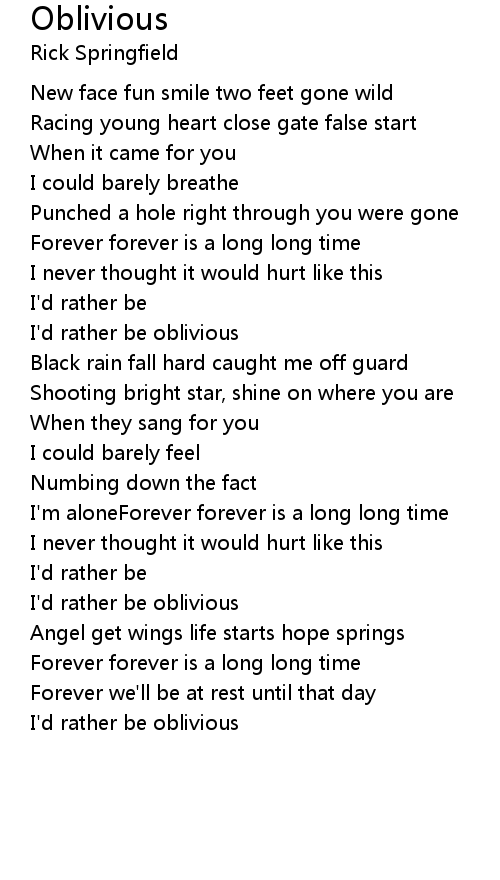 I'd rather be oblivious |
