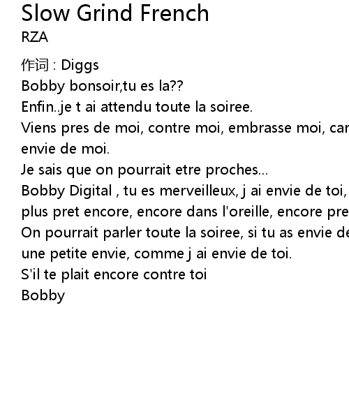 | Bobby Digital , tu es merveilleux, j ai envie de toi, tout de suite,maintenant, plus pret encore, encore dans l'oreille, encore pret du corps. | |