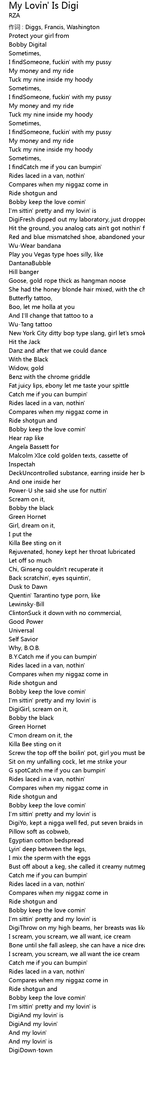 | 作词 : Diggs, Francis, Washington | |