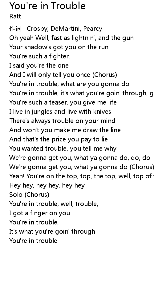 | You' re in trouble, well, trouble, | |