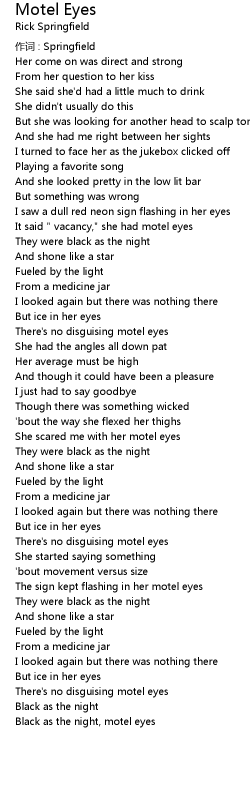 | She scared me with her motel eyes | |
