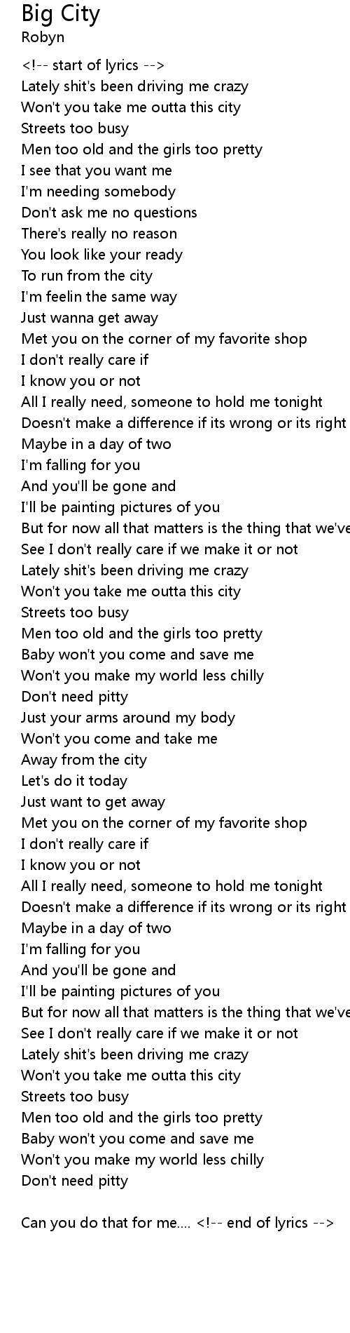 Can you do that for me.... <!-- end of lyrics --> |