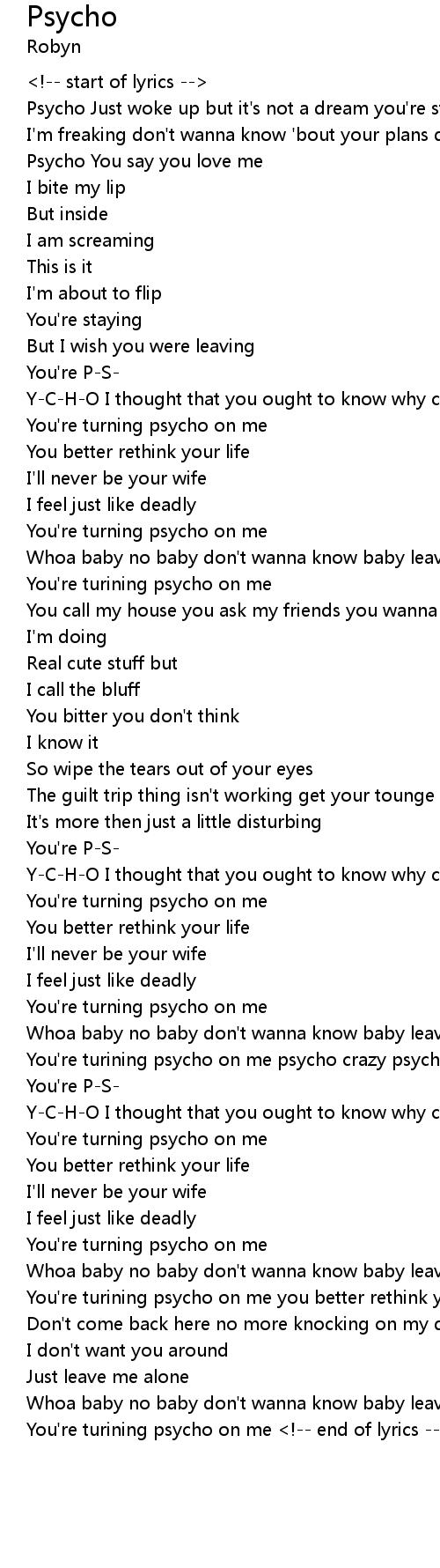 You're turining psycho on me <!-- end of lyrics --> |