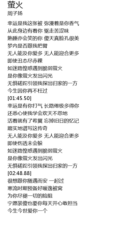| [02:36.38] | 是你像萤火发出闪光 |