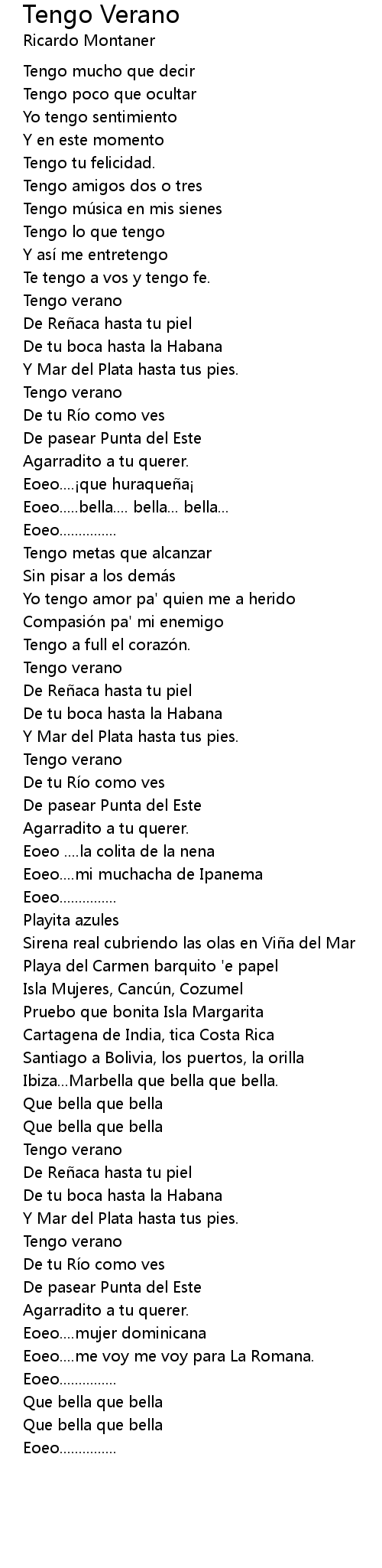 | Song | Tengo Verano |