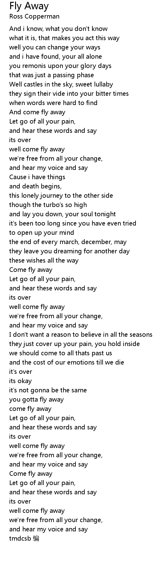 | [02:45.87] | well come fly away |
