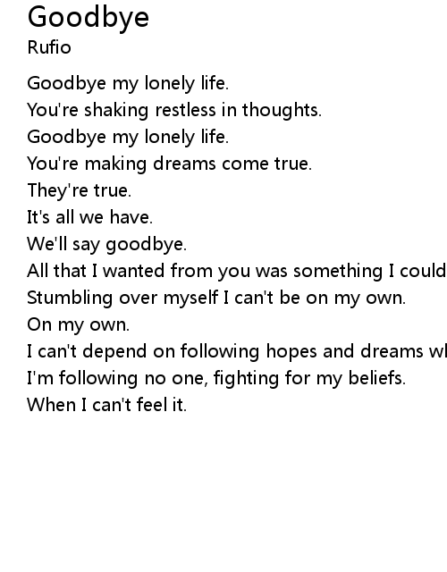 | Goodbye my lonely life. | |