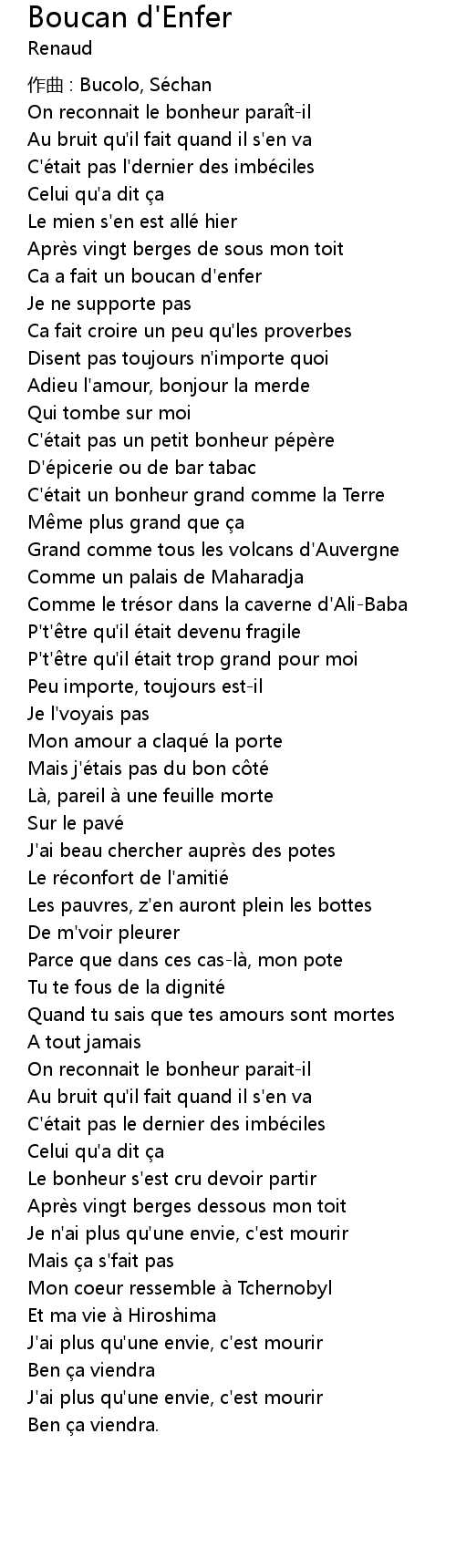 | Je n' ai plus qu' une envie, c' est mourir | |