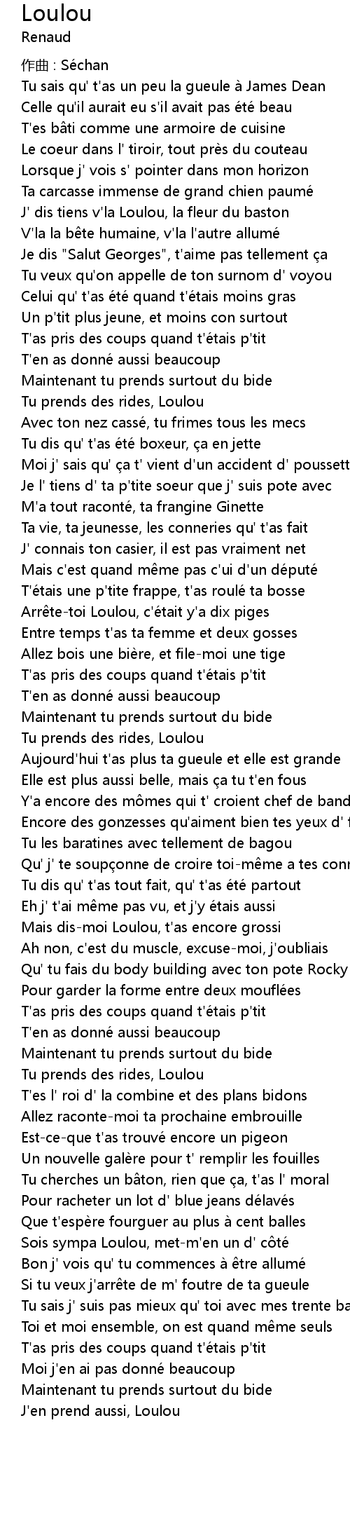 | Sois sympa Loulou, metm' en un d' c te | |