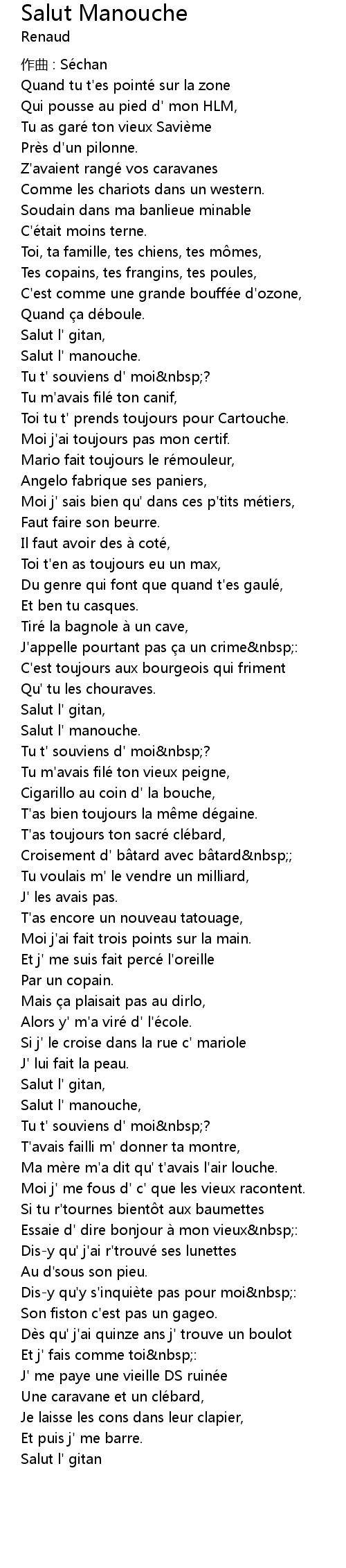 | Toi, ta famille, tes chiens, tes mômes, | |
