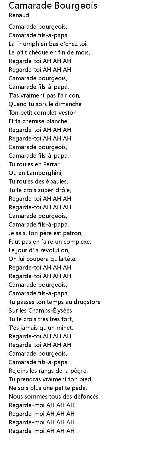 | Song | Camarade Bourgeois |