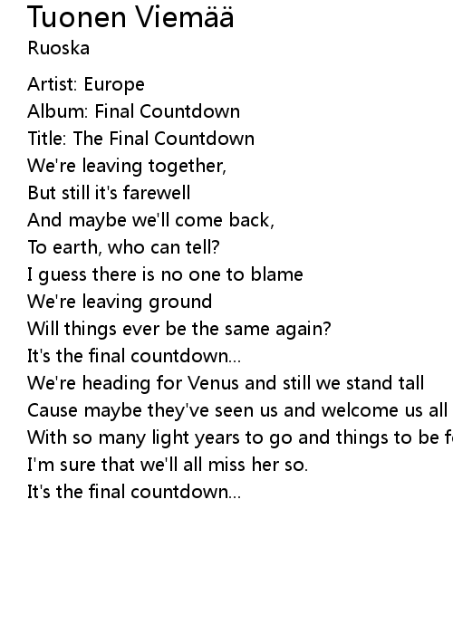 | [01:05.57] | Album: Final Countdown |