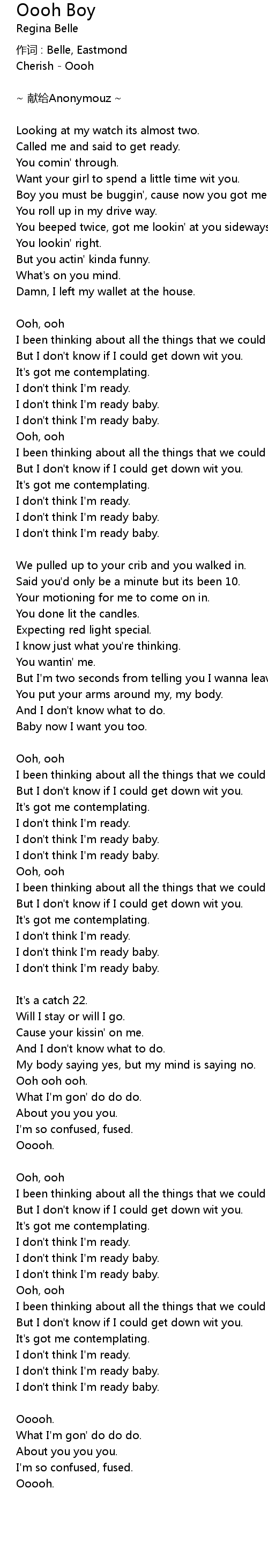 | Song | Oooh Boy |