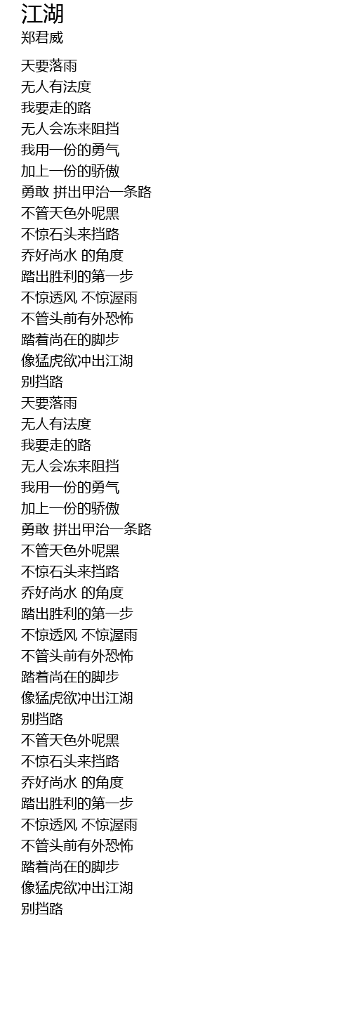 | [02:44.66] | xiang meng hu yu chong chu jiang hu |