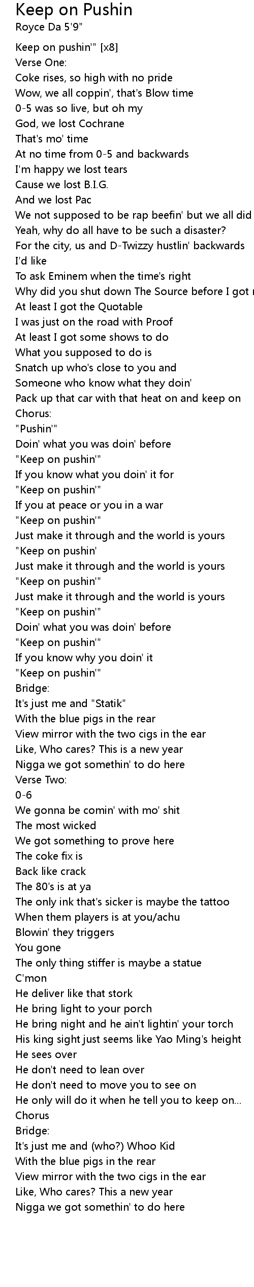 Keep on pushin'" [x8] |
