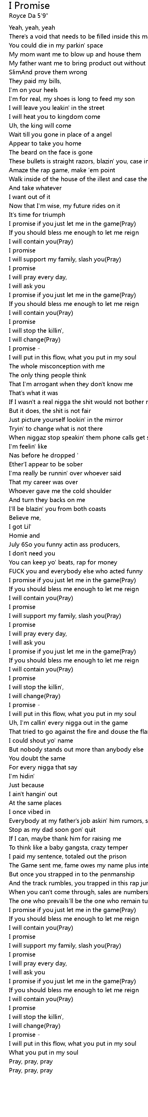 I promise if you just let me in the game(Pray) |