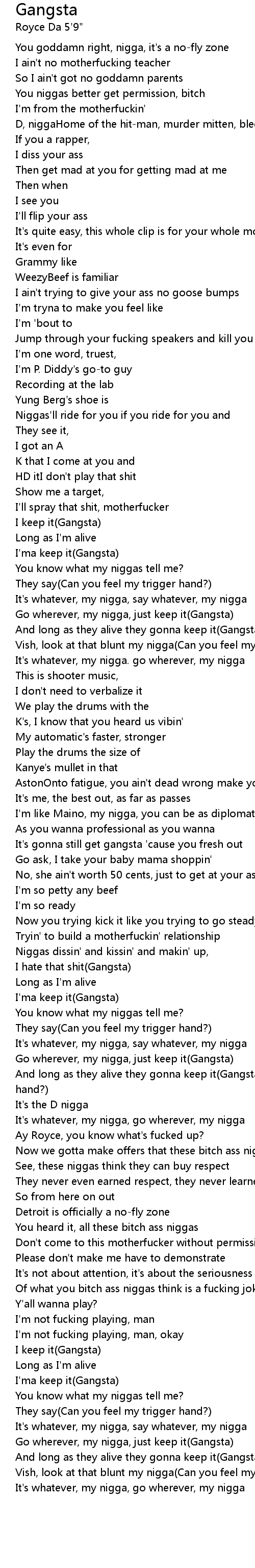 And long as they alive they gonna keep it(Gangsta)(Can you feel my trigger hand?) |
