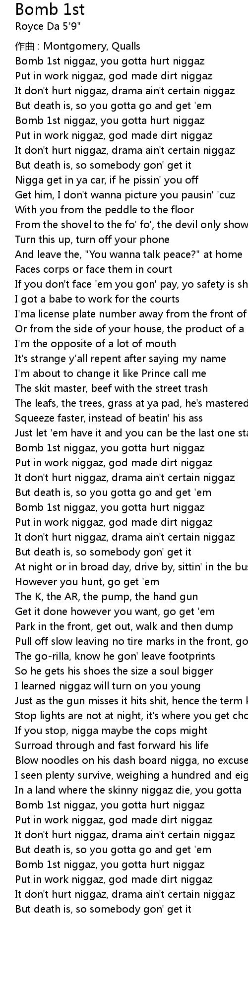 | Bomb 1st niggaz, you gotta hurt niggaz | |