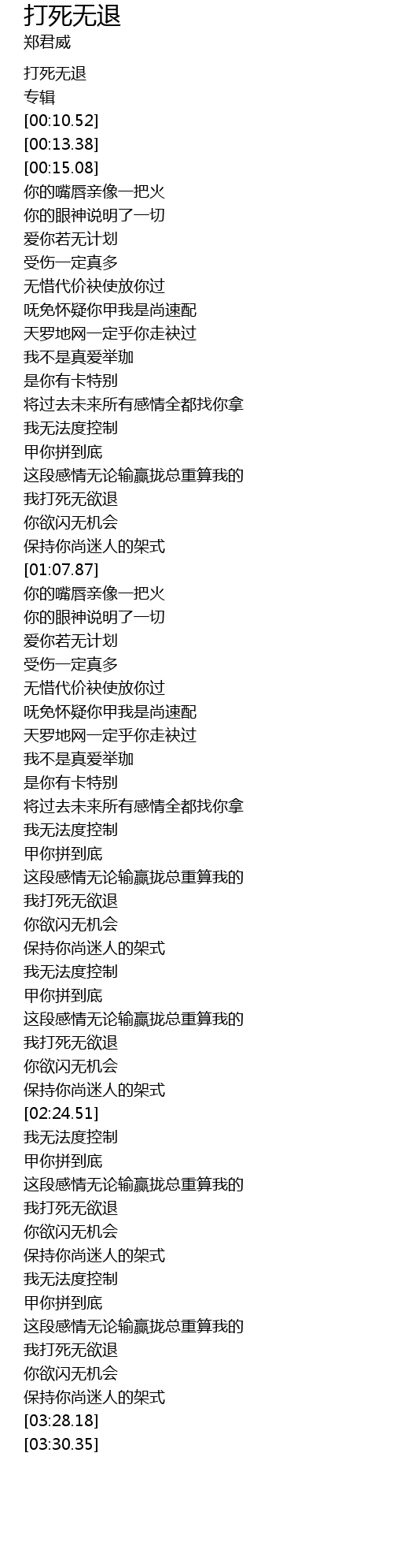 | [03:01.37] | wǒ dǎ sǐ wú yù tuì |
