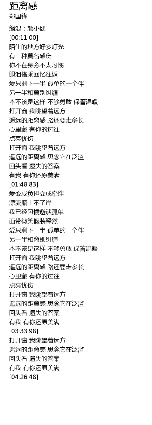 | [01:04.46] | 遥远的距离感 路还要走多长 |