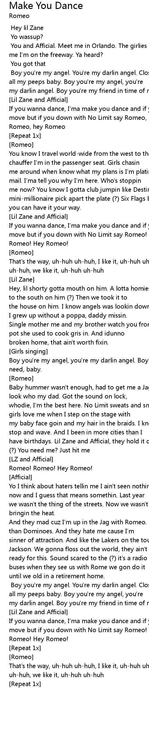 If you wanna dance, I'ma make you dance and if you wanna move, I'ma make you move but if you down with No Limit say Romeo, |