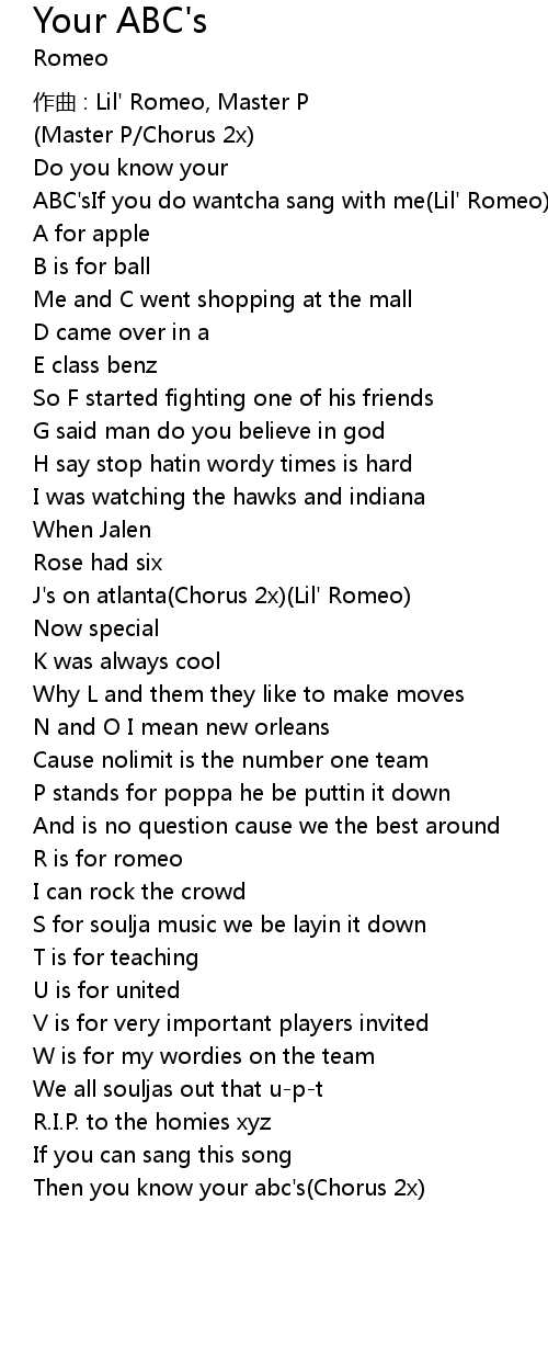 | ABC'sIf you do wantcha sang with me(Lil' Romeo) | |