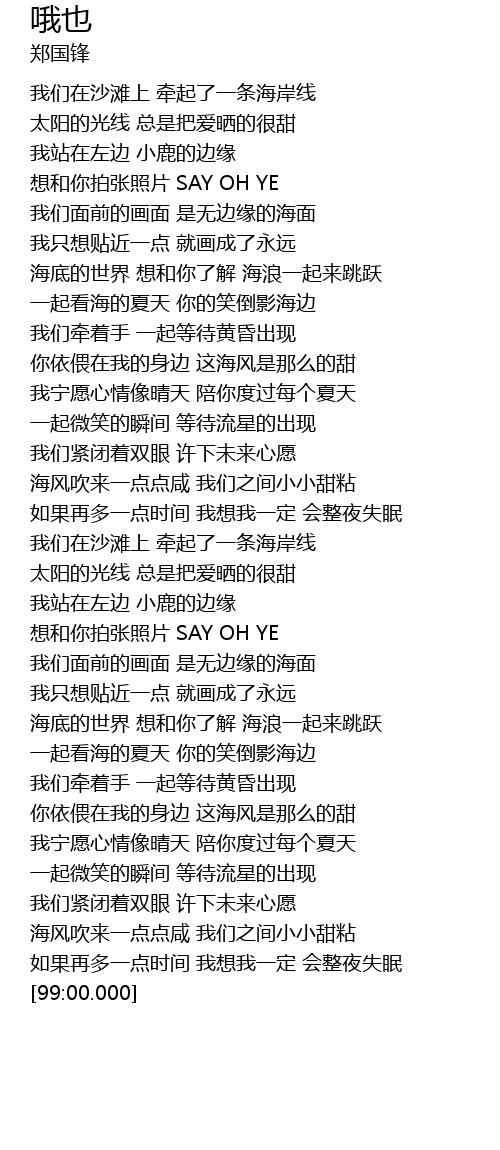 | [00:24.360] | 我们在沙滩上 牵起了一条海岸线 |